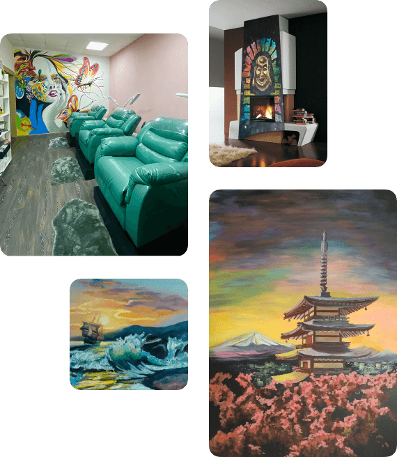 Например, если в комнате мало света, настенная живопись и правильно подобранная композиция помогут исправить ситуацию. И это действительно проверенный способ. Поэтому смело обращайтесь к нам, чтобы внести изменения в ваш интерьер и наполнить его особым теплом и атмосферой.